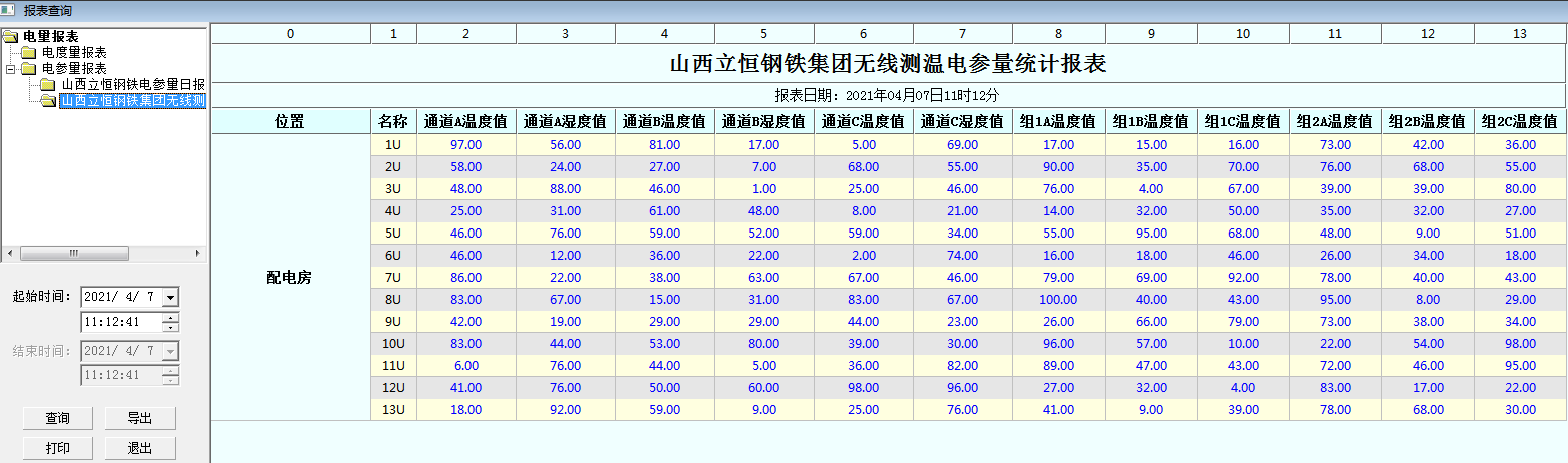 5.3運行報表:查詢及打印各測溫點指定時間的溫度數據。