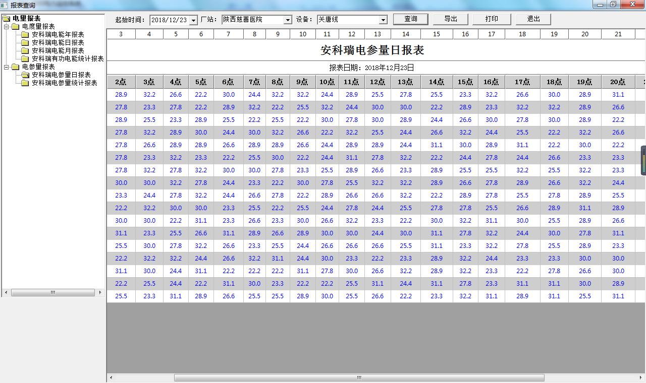查詢配電室內設備的運行數據報表,包括日報表、月報表、年報表和查詢報表等。