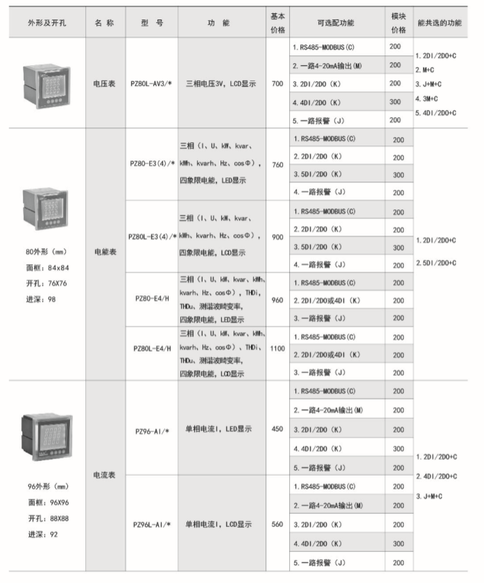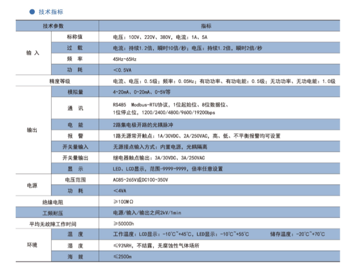 該系列儀表采用交流采樣技術,能分別測量電網中的電流、電壓、功率、功率因數和電能等參數。可帶RS485通訊接口、模擬量數據轉換、開關量輸入/輸出等功能,實現電力參數、電氣元件工作狀態的遠程傳輸,便于后臺監控系統集中檢測。