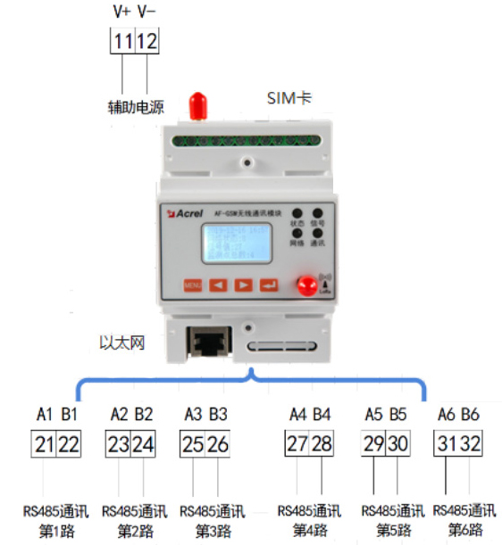 本產品提供標準RS485數據接口,可以方便的連接RTU、PLC、工控機等設備,僅需一次性完成初始化配置,就可以完成對MODBUS設備的數據采集,并且與安科瑞服務器進行通訊。