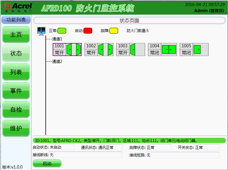 | 常開單門 | AFRD-CK1 | 接收常開單扇防火門的狀態信息并將其反饋至監控器,同時將監控器的指令傳遞給電動閉門器、電磁釋放器 |